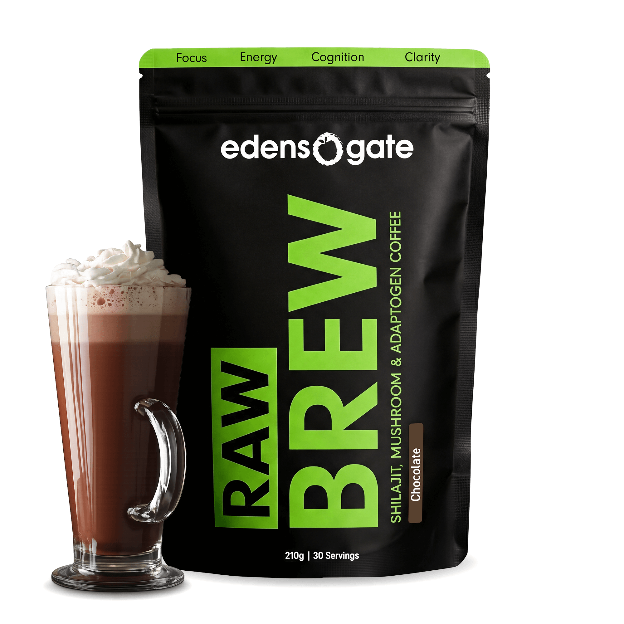 Edensgate RAW BREW Shilajit Mushroom Coffee - A special unique blend of Pure Himalayan Shilajit & Adaptogenic Mushrooms built to help you focus, gain more energy, enhance your performance, energy & sharpen your clarity, all through the application of natural ingredients, adaptogens & vitamins.